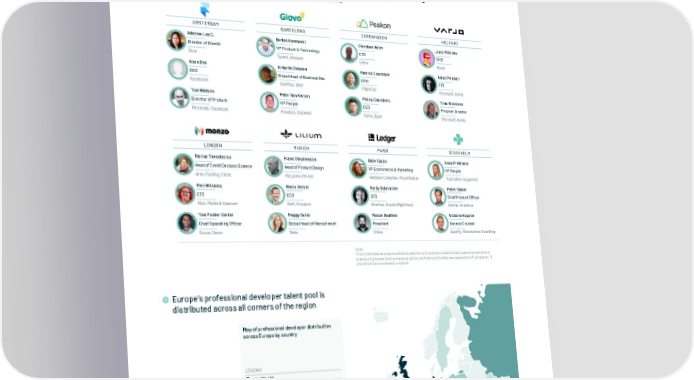 People Power The next generation of European tech companies from hubs across the region are being The next generation of European tech companies from hubs across the built by experienced tech talent from previous generations region are being built by experienced tech talent from previous generations AMSTERDAM BARCELONA COPENHAGEN HELSINKI Adeline Lee C. Bartek Kunowski Christian Holm Jussi Mäkinen Director of Growth VP Product & Technology CTO CMO Clue Tuenti, Amazon Citrix Rovio Koen Bok Kritarth Chhabra Patrick Cournoyer Klaus Melakari CEO Global Head of Business Dev. COO CTO Facebook OnePlus, Uber FlightCar Microsoft, Nokia Tom Watson Peter Van Kersen Phillip Chambers Tiina Nieminen Director of Product VP People CEO Program Director Pinterest, Facebook Foodora, Catawiki Citrix, Qype Microsoft, Nokia LONDON MUNICH PARIS STOCKHOLM Marina Theodosiou Frank Stephenson Odile Szabo Anna Fredrixon Head of Credit Decision Science Head of Product Design VP Ecommerce & Marketing VP People Aire, Funding Circle McLaren, Ferrari Vestiaire Collective, PriceMinister Truecaller, Capgemini Meri Williams Remo Gerber Marty Ostermiller Peder Stahle CTO CCO CFO Chief Product Officer Moo, Marks & Spencer Gett, Groupon HireVue, Oracle (RightNow) iZettle, Vodafone Tom Foster-Carter Meggy Sailer Pascal Gauthier Victoria Kopylov Chief Operating Officer Global Head of Recruitment President General Counsel Curve, Oscar Tesla Criteo Spotify, Mannheimer Swartling Note: Note: This is intended as a representative selection of experienced talent that is This is intended as a representative selection of experienced talent that is gained experience in gained experience in previous European tech companies and is now helping to previous European tech companies and is now helping to build a new generation of companies. It Europe's professional developer talent pool is distributed The State of European Tech 2018 build a new generation of companies. It should not be considered complete. across all corners of the region should not be considered complete. Europe’s professional developer talent pool is Europe's professional developer talent pool is distributed Map of professional developer distribution across all corners of the region distributed across all corners of the region across Europe by country Map of professional developer distribution across Europe by country LEGEND upto 1,000,000 LEGEND 800,000 to 900,000 upto 850,400 700,000 to 800,000 680,320 to 765,360 595,280 to 680,320 600,000 to 700,000 510,240 to 595,280 500,000 to 600,000 425,200 to 510,240 400,000 to 500,000 340,160 to 425,200 255,120 to 340,160 300,000 to 400,000 170,080 to 255,120 200,000 to 300,000 85,040 to 170,080 100,000 to 200,000 upto 85,040 upto 100,000 Source: & 44 In Partnership with www.thestateofeuropeantech.com Source: