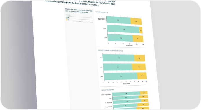Density, through Interconnected Tech Hubs The European ecosystem benefits from interconnectivity in a number of ways The European ecosystem bene ts from interconnectivity in a number of ways that help drive the ow of that help drive the flow of knowledge, talent, and capital. Exchanges amongst The European ecosystem bene ts from interconnectivity in a number of ways that help drive the ow of knowledge, talent and capital. The ow of useful ideas and knowledge throughout the European tech ecosystem is counterparts, whether founders or investors, enables the flow of useful ideas knowledge, talent and capital. The ow of useful ideas and knowledge throughout the European tech ecosystem is enabled by exchanges between counterparts, whether founders or investors. and knowledge throughout the European tech ecosystem. enabled by exchanges between counterparts, whether founders or investors. The European ecosystem bene ts from interconnectivity in a number of ways that help drive the ow of knowledge, talent and capital. The ow of useful ideas and knowledge throughout the European tech ecosystem is I have exchanged useful ideas and knowledge enabled by exchanges between counterparts, whether founders or investors. I have exchanged useful ideas and knowledge with my counterparts from other hubs Founder or startup/ DATASET: OCCUPATION 67% 33% with my counterparts from other hubs scale-up employee DATASET: OCCUPATION Founder or startup/ 67% 33% scale-up employee DATASET: OCCUPATION I have exchanged useful ideas and knowledge LEGEND with my counterparts from other hubs Founder or startup/ LEGEND scale-up employee 67% 33% Yes DATASET: OCCUPATION Yes No Investor 91% 9% No Investor 91% 9% LEGEND Yes No Investor 91% 9% Other 69% 31% Other 69% 31% Other 0 20 69% 40 60 80 31% 100 0 20 40 60 80 100 % of respondents % of respondents Note: In subregions, only founders' and startup/scale-up employees' 0 20 40 60 80 100 Note: Source: responses included. In company sizes, only founders' In subregions, only founders' and startup/scale-up employees' The European ecosystem bene�ts from interconnectivity in a number of ways that help drive the �ow of Source: % of respondents responses. responses included. In company sizes, only founders' knowledge, talent and capital. The �ow of useful ideas and knowledge throughout the European tech ecosystem is responses. Note: In subregions, only founders' and startup/scale-up employees' enabled by exchanges between counterparts, whether founders or investors. Source: responses included. In company sizes, only founders' DATASET: COMPANY SIZE BY # OF EMPLOYEES responses. I have exchanged useful ideas and knowledge with my counterparts from other hubs <=10 74% 26% DATASET: COMPANY SIZE BY # OF EMPLOYEES LEGEND Yes No 11-100 67% 33% 100+ 77% 23% 0 10 20 30 40 50 60 70 80 90 100 The European ecosystem bene ts from interconnectivity in a number of ways that help drive the ow of The European ecosystem bene�ts from interconnectivity in a number of ways that help drive the �ow of % of respondents knowledge, talent and capital. The ow of useful ideas and knowledge throughout the European tech ecosystem is knowledge, talent and capital. The �ow of useful ideas and knowledge throughout the European tech ecosystem is Note: enabled by exchanges between counterparts, whether founders or investors. enabled by exchanges between counterparts, whether founders or investors. In subregions, only founders' and startup/scale-up employees' Source: responses included. In company sizes, only founders' DATASET: SUBREGION responses. I have exchanged useful ideas and knowledge Central Europe & Baltics 22% I have exchanged useful ideas and knowledge 78% with my counterparts from other hubs Founder or startup/ with my counterparts from other hubs scale-up employee 67% 33% DATASET: OCCUPATION DACH 73% 27% DATASET: SUBREGION LEGEND LEGEND Eastern Europe 79% 21% Yes Yes No Investor 91% 9% No France & Benelux 67% 33% Nordics 64% 36% Southern Europe 68% 32% Other 69% 31% UK & Ireland 65% 35% 0 20 40 60 80 100 0 20 40 60 80 100 % of respondents % of respondents Note: Note: In subregions, only founders' and startup/scale-up employees' In subregions, only founders' and startup/scale-up employees' Source: responses included. In company sizes, only founders' Source: responses included. In company sizes, only founders' responses. responses. & 70 In Partnership with www.thestateofeuropeantech.com