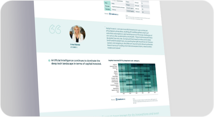 06.2 Deepening Europe’s frontier tech credentials Many interesting deep tech companies have raised funding Many interesting deep tech companies have raised funding Many interesting deep tech companies have raised Selected investment rounds raised by European this year in Europe deep tech companies in 2018 this year in Europe funding this year in Europe. Industry Location Last round Round size ($M) Industry Location Last round Round size ($M) Selected investment rounds raised by UiPath Enterprise software Romania Series C 225 European deep tech companies in 2018 Selected investment rounds raised by UiPath Enterprise software Romania Series C 225 European deep tech companies in 2018 Ledger FinTech France Series B 69 Ledger FinTech France Series B 69 Celonis Enterprise software Germany Series B 50 Celonis Enterprise software Germany Series B 50 Darktrace Legal security United Kingdom Series E 50 Darktrace Legal security United Kingdom Series E 50 Meero Media France Series B 45 Meero Media France Series B 45 Iceye Media, Transporation Finland Series B 34 Iceye Media, Transporation Finland Series B 34 Navya Robotics, Transportation France Series C 34 Navya Robotics, Transportation France Series C 34 Varjo Media Finland Series B 31 Varjo Media Finland Series B 31 Medopad Health, Enterprise software United Kingdom Series A 28 Medopad Health, Enterprise software United Kingdom Series A 28 Tractable FinTech United Kingdom Series B 25 Tractable FinTech United Kingdom Series B 25 Note: Note: Some of the numbers converted from EUR to USD with an FX Source: Some of the numbers converted from EUR to USD with an FX rate of 1.13, the rate on 14 November 2018. rate of 1.13, the rate on 14 November 2018. Source: “ Going forward, I can see more R&D based start-ups coming out of European universities, building off multidisciplinary teams of scientists and engineers and tackling some of the large challenges of our century like sustainability and health. These businesses will likely be global from day one. Europe will then need to make sure to keep (and fund) this talent here, by creating the right incentives for the eco- system and adapting to the different requirements these businesses Irina Haivas have in terms of funding and milestone expectations, new business Atomico models and talent.” Artiïcial Intelligence continues to dominate the deep tech Arti cial Intelligence continues to dominate the deep tech landscape in terms of capital invested. landscape in terms of capital invested. Artificial Intelligence continues to dominate the Capital invested ($M) by deep tech sub-category Capital invested ($M) by deep tech sub- Artificial Intelligence 234 582 1,086 1,382 2,306 1,965 Artificial Intelligence 234 582 1,086 1,382 2,306 1,965 deep tech landscape in terms of capital invested. Hardware 408 376 1,197 1,674 943 1,282 category Capital invested ($M) by deep tech sub- Hardware 408 376 1,197 1,674 943 1,282 Internet of Things 62 223 555 837 677 684 category Internet of Things 62 223 555 837 677 684 Blockchain 45 133 66 171 223 651 3D 100 111 282 325 264 610 Blockchain 45 133 66 171 223 651 Big data 146 317 455 358 516 452 3D 100 111 282 325 264 610 Robotics 10 35 94 187 243 368 Big data 146 317 455 358 516 452 Search 96 441 458 575 328 299 Robotics 10 35 94 187 243 368 Virtual reality 7 32 160 304 652 244 Search 96 441 458 575 328 299 Computer vision 23 3 106 115 107 237 Virtual reality 7 32 160 304 652 244 Developer tools 78 156 97 142 668 205 Computer vision 23 3 106 115 107 237 Semiconductors 154 78 162 159 159 183 Developer tools 78 156 97 142 668 205 Nanotech 23 13 101 182 49 145 Semiconductors 154 78 162 159 159 183 Predictive analytics 16 353 274 273 156 120 Nanotech 23 13 101 182 49 145 Drones 7 3 70 75 29 112 Predictive analytics 16 353 274 273 156 120 Deep learning 19 31 89 63 196 71 Drones 7 3 70 75 29 112 Speech & Hearing 23 71 2 37 35 14 Deep learning 19 31 89 63 196 71 Radar 9 21 5 19 13 0 Speech & Hearing 23 71 2 37 35 14 2013 2014 2015 2016 2017 2018 Radar 9 21 5 19 13 0 Note: 2013 2014 2015 2016 2017 2018 Hardware includes hardware manufacturing. 2018 based on 9 Source: months to September 2018 and projection for Q4 2018 based on Note: Q3 2018. Hardware includes hardware manufacturing. 2018 based on 9 Source: months to September 2018 and projection for Q4 2018 based on Q3 2018. Throughout history, Europe’s been known for its innovations and even today, top research projects are led by European teams, so let’s make sure this remains the case in the coming years. “ Europe is home to the largest share of top 100 AI research institutions globally in addition to being home to half of the top computer science institutions. Throughout history, Europe’s been known for its innovations and even today, top research projects are led by European teams, so let’s make sure this remains the case in the coming years.” Rasmus Ekholhm Slush & 89 In Partnership with www.thestateofeuropeantech.com