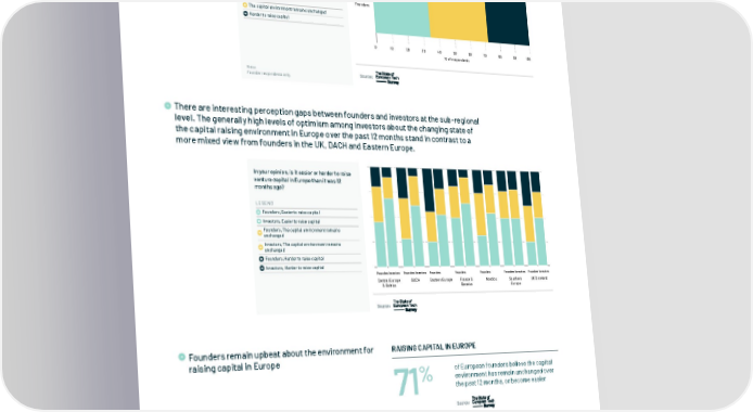 08.1 European Capital Flows Sentiment within the European tech ecosystem around the capital raising environment is broadly positive. 72% of European founders and 84% of European investors believe Sentiment within the European tech ecosystem around the capital raising environment is broadly positive. 72% of that it has either stayed the same or has become easier to raise VC in Europe in the past European founders and 84% of European investors believe that it has either stayed the same or has become easier 12 months. This is very similar to responses from 2017’s survey, where the equivalent to raise VC in Europe in the past 12 months. This is very similar to responses from 2017's survey, where the responses were 73% of founders and 83% of VCs. equivalent responses were 73% of founders and 83% of VCs. In your opinion, is it easier or harder to raise venture capital in Europe than it was 12 months ago? LEGEND Easier to raise capital Founders The capital environment remains unchanged Harder to raise capital 0 10 20 30 40 50 60 70 80 90 100 % of respondents Note: Founder respondents only. There are interesting perception gaps between founders and investors at the sub-regional level. The generally high levels of optimism among investors about the changing state of the capital raising environment in Europe over the past 12 months stand in contrast to a DACH region shows the largest gap between founders and more mixed view from founders in the UK, DACH and Eastern Europe. investors in how they perceive the fundraising environment In your opinion, is it easier or harder to raise venture capital in Europe than it was 12 months ago? LEGEND Founders, Easier to raise capital Investors, Easier to raise capital Founders, The capital environment remains unchanged Investors, The capital environment remains unchanged Founders, Harder to raise capital Investors, Harder to raise capital FoundersInvestors FoundersInvestors Founders Founders Founders FoundersInvestors FoundersInvestors Central Europe DACH Eastern Europe France & Nordics Southern UK & Ireland & Baltics Benelux Europe Founders remain upbeat about the environment for RAISING CAPITAL IN EUROPE raising capital in Europe of European founders believe the capital % environment has remain unchanged over 71 the past 12 months, or become easier 2018 has again set a new record for total capital CAPITAL INVESTMENT IN EUROPE invested in the European tech ecosystem Projected total capital investment in $ B European tech in 2018, up 4.3x since 2013 23 105 In Partnership with & www.thestateofeuropeantech.com