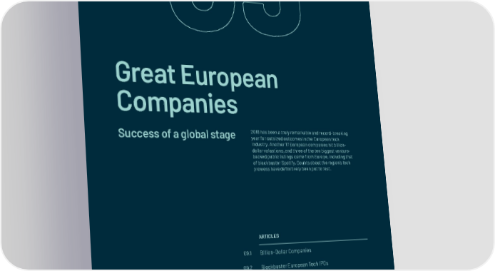 Great European Companies Success of a global stage 2018 has been a truly remarkable and record-breaking year for outsized outcomes in the European tech industry. Another 17 European companies hit billion- dollar valuations, and three of the ten biggest venture- backed public listings came from Europe, including that of blockbuster Spotify. Doubts about the region’s tech prowess have definitively been put to rest. ARTICLES 09.1 Billion-Dollar Companies 09.2 Blockbuster European Tech IPOs 09.3 Spotify: Celebrating a European Milestone 09.4 The European Exit Environment In Partnership with & www.thestateofeuropeantech.com