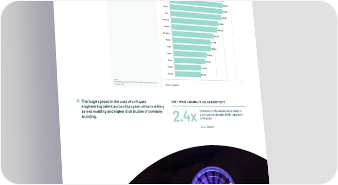 05.5 New Hubs - Where Next? There is a wide variation in the average software engineer salary both across countries and even within them. According to Glassdoor, software engineers have the highest There is a wide variation in the average software engineer salary both across countries and even within them. median salary in Berlin, which reflects the fact that Berlin has a disproportionately low According to Glassdoor, software engineers have the highest median salary in Berlin, which reưects the fact that it density of local professional developers compared to other cities, but a large number has a disproportionately low density of local professional developers compared to other cities, but a large number of well-capitalised VC-backed companies that are chasing talent. of well-capitalised VC-backed companies that are chasing talent. Average software engineer salary per year by Berlin $58,750 city London $54,000 LEGEND Annual salary ($) Amsterdam $52,250 Vienna $51,500 Paris $49,750 Cambridge $46,000 Helsinki $44,500 Barcelona $40,250 Madrid $36,750 Milan $36,750 Lisbon $31,500 Rome $29,750 Prague $25,000 Warsaw $24,250 Note: Rounded to nearest $250. Data pulled from Glassdoor on 24 Source: Glassdoor October 2018. Glassdoor The huge spread in the cost of software SOFTWARE ENGINEER SALARIES BY CITY engineering talent across European cities is driving talent mobility and higher distribution of company Difference in the median base salary of building. a software engineer in Berlin compared 2.4x to Warsaw Glassdoor 81 In Partnership with & www.thestateofeuropeantech.com Photo: Damon Beckford