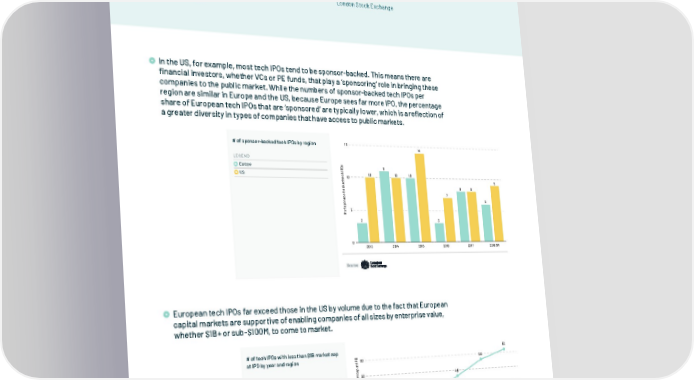 09.2 Blockbuster European Tech IPOs “ Since 2014, European tech companies have IPO’d at rates far exceeding that of US tech companies – European markets, like European tech has London’s AIM, are structured to support tech listings of all sizes, and Europe’s public market investors back them. But as Europe has arrived, and whether stretched its lead with smaller caps, 2018 also heralded the arrival of they’re valued in tens of a series of long awaited, high profile listings, all well in excess of $1bn in market cap, and a surge of Fintech companies on public markets. millions or tens of billions, European tech has arrived, and whether they’re valued in tens of millions or tens of billions, they bust the myths about European tech they bust the myths about with each new listing.” European tech with each James Clark new listing. London Stock Exchange In the US, for example, most tech IPOs tend to be sponsor-backed. This means there are financial investors, whether VCs or PE funds, that play a ‘sponsoring’ role in bringing these companies to the public market. While the numbers of sponsor-backed tech IPOs per region are similar in Europe and the US, because Europe sees far more IPO, the percentage share of European tech IPOs that are ‘sponsored’ are typically lower, which is a reflection of The number of sponsor-backed tech IPOs is stable both in a greater diversity in types of companies that have access to public markets. Europe and the US # of sponsor-backed tech IPOs by region 15 14 LEGEND Europe s O 11 P I US h 10 10 10 c 10 e t 9 d e k c 8 8 a b - r 7 o s n 6 po s f 5 o # 3 3 0 2013 2014 2015 2016 2017 2018 9M Source: European tech IPOs far exceed those in the US by volume due to the fact that European Many more European tech SMEs choose to go public capital markets are supportive of enabling companies of all sizes by enterprise value, indicating Europe's supportive listing environment for earlier whether $1B+ or sub-$100M, to come to market. stage companies # of tech IPOs with less than $1B market cap 62 at IPO by year and region O60 P 56 I t a p a c LEGEND t50 46 e k Europe r ma B US 140 36 $ n a h t 29 s 28 s e30 l h t 23 wi s O20 16 P I 15 15 h c 11 e t f o 10 # 0 2013 2014 2015 2016 2017 2018 9M Source: 131 In Partnership with & www.thestateofeuropeantech.com
