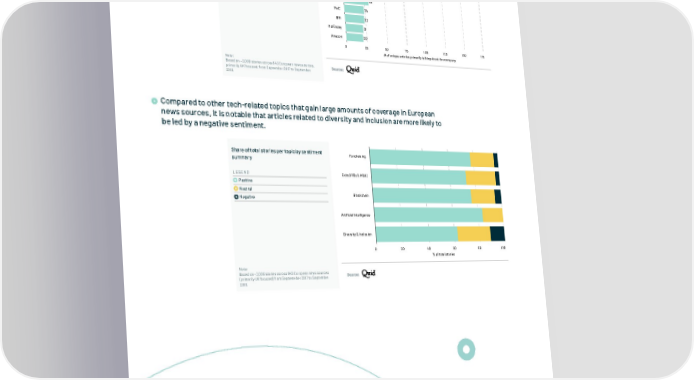03.1 We’ve Got a Problem The narrative around diversity and inclusion is driven by US tech companies, leaving a huge vacuum in terms of Interestingly, the reporting we do see on diversity and inclusion in tech in European news European voices stepping up into the discussion. In the absence of European voices taking part in the discussion, sources is driven by US tech companies. There’s a huge vacuum of European voices does this leave an opportunity for leadership from European tech companies to help drive the discussion in a stepping into the discussion. We all have a responsibility to do and say much more. positive way? Top 10 most discussed companies in Google 157 European news stories focused on diversity Facebook 88 and inclusion in the tech industry Twitter 45 LEGEND Microsoft 37 # of mentions Apple 35 Salesforce 30 PwC 24 IBM 23 McKinsey 21 Amazon 20 0 25 50 75 100 125 150 175 # of unique articles primarily talking about the company Note: Based on ~3,000 stories across 843 European news sources, primarily UK focused, from September 2017 to September Source: 2018. Compared to other tech-related topics that gain large amounts of coverage in European news sources, it is notable that articles related to diversity and inclusion are more likely to Compared to other tech-related topics that gain large amounts of coverage in European news sources, it is notable be led by a negative sentiment. that articles related to diversity and inclusion are more likely to be led by a negative sentiment. Share of total stories per topic by sentiment Fundraising summary LEGEND Exits (IPOs & M&A) Positive Neutral Negative Blockchain Artificial Intelligence Diversity & Inclusion 0 20 40 60 80 100 % of total stories Note: Based on ~3,000 stories across 843 European news sources (primarily UK focused) from Septemeber 2017 to September Source: 2018. & 32 In Partnership with www.thestateofeuropeantech.com
